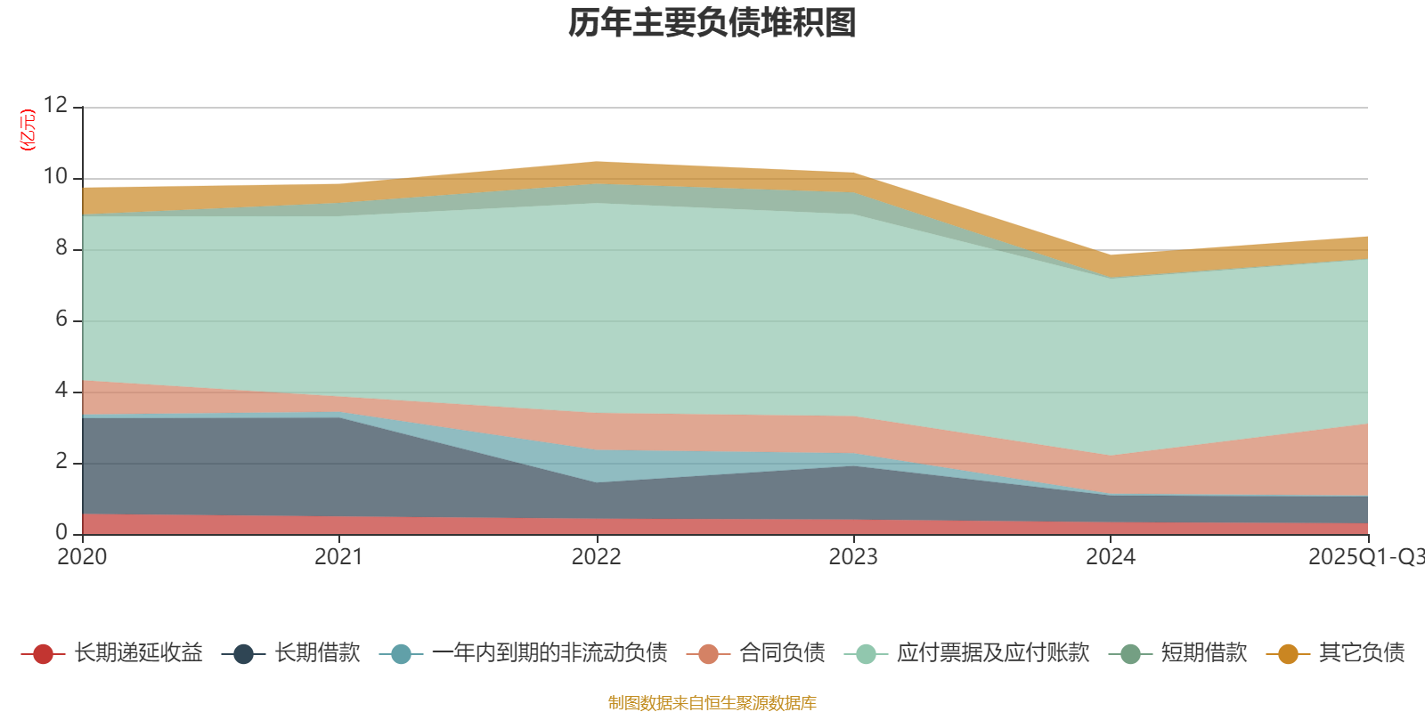 负债重大变化方面,截至2025年三季度末,公司合同负债较上年末增加88.59%,占公司总资产比重上升3.23个百分点;应付票据及应付账款较上年末减少7.16%,占公司总资产比重下降1.93个百分点;其他应付款(含利息和股利)较上年末减少9.85%,占公司总资产比重下降0.15个百分点;长期递延收益较上年末减少8.15%,占公司总资产比重下降0.14个百分点。