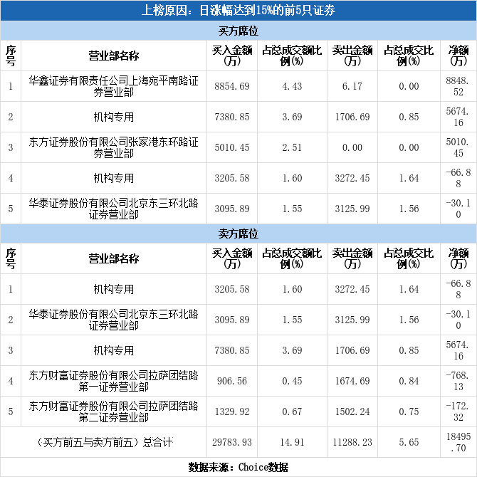 多主力现身龙虎榜,四方达上涨15.37%(12-03)