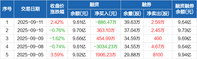 华峰超纤:融资净偿还886.47万元,融资余额9.61亿元(09-11)