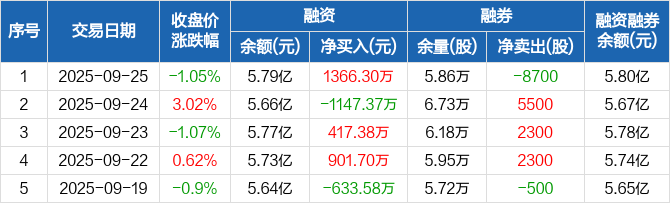 佐力药业:融资净买入1366.3万元,融资余额5.79亿元(09-25)