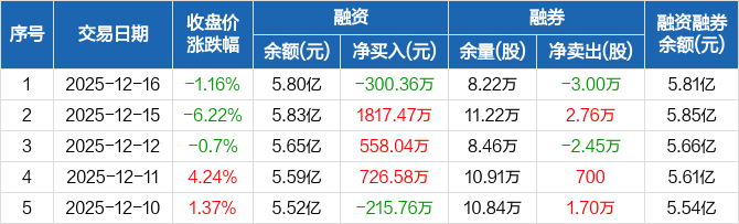 佐力药业:融资净偿还300.36万元,融资余额5.8亿元(12-16)