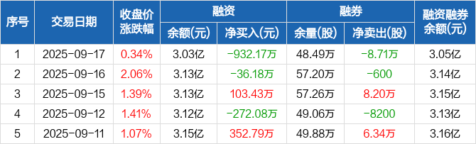 通裕重工:融资净偿还932.17万元,融资余额3.03亿元(09-17)