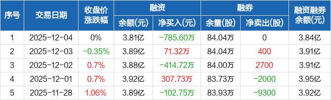 通裕重工:融资净偿还785.6万元,融资余额3.81亿元(12-04)