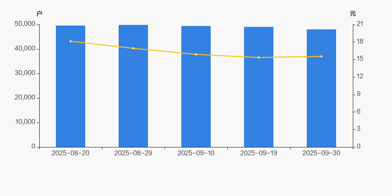 自2025年8月29日以来,公司股东户数连续3期下降,截至目前减幅为3.64%。2025年8月29日至2025年9月30日区间股价下降8.10%。