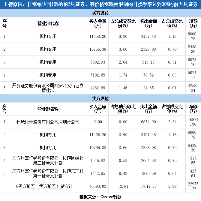 深交所2025年12月10日交易公开信息显示,神农种业因属于日涨幅达到15%的前5只证券、有价格涨跌幅限制的日换手率达到30%的前五只证券而登上龙虎榜。神农种业当日报收6.88元,涨跌幅为20.07%,换手率51.33%,振幅20.07%,成交额29.40亿元。