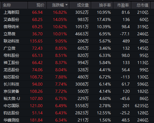 此外,立昂微涨停,中芯国际涨超6%。