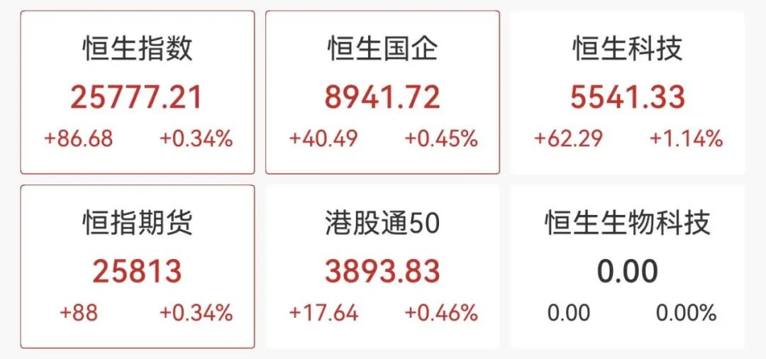 港股方面,恒生科技指数涨超1%,商汤、中芯国际涨超7%。