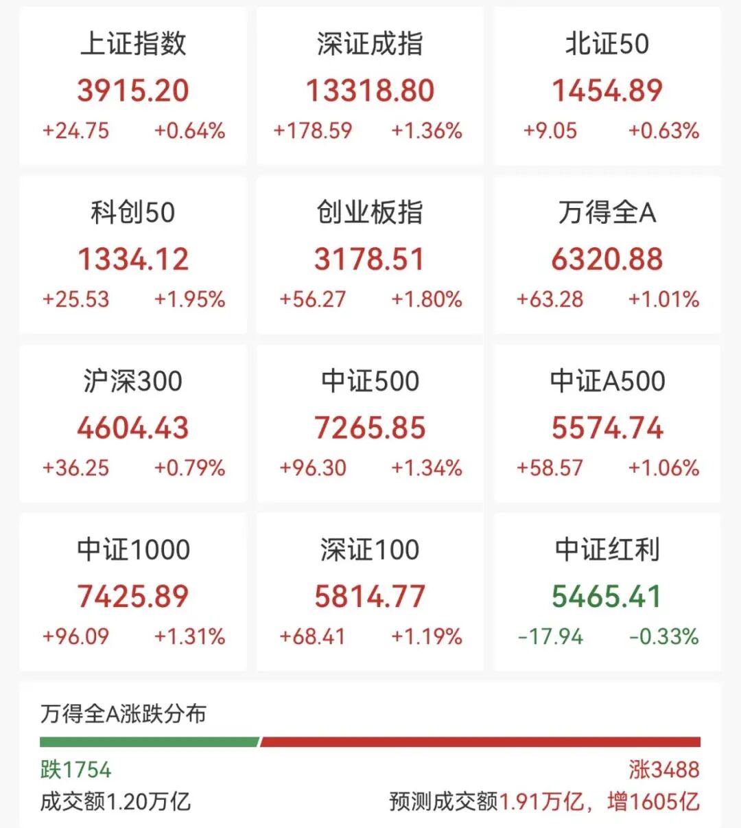 12月22日上午,A股市场震荡拉升,沪指收复3900点关口,创业板指一度涨超2%,截至午间收盘,沪指涨0.64%,深成指涨1.36%,创业板指涨1.8%。