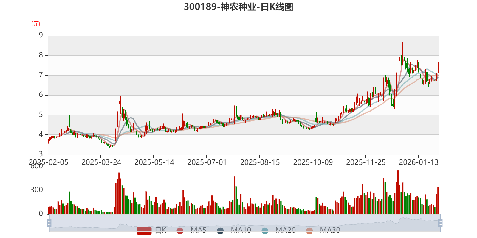 中证智能财讯神农种业(300189)1月29日晚间披露2025年度业绩预告,预计2025年归母净利润9000万元至1.2亿元,上年同期亏损4987.43万元;扣非净利润预计0元至500万元,上年同期亏损4562.44万元。以1月29日收盘价计算,神农种业目前市盈率(TTM)约为65.45倍-87.27倍,市净率(LF)约10.76倍,市销率(TTM)约40.79倍。