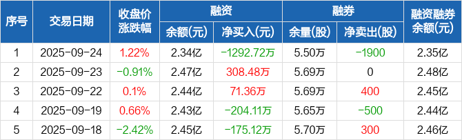 潜能恒信:融资净偿还1292.72万元,融资余额2.34亿元(09-24)