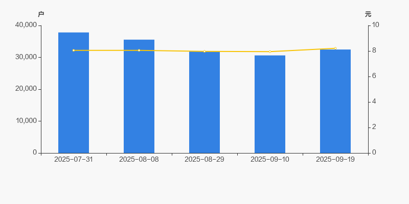 2025年7月31日至今,公司股东户数显著下降,区间跌幅为14.16%。2025年7月31日至2025年9月19日区间股价上涨1.99%。