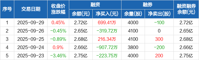 节能铁汉:融资净买入699.41万元,融资余额2.72亿元(09-29)