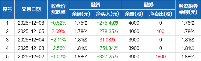 节能铁汉:融资余额1.75亿元,创近一年新低(12-08)