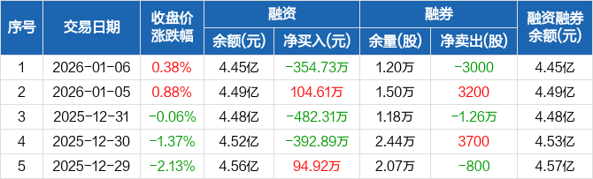 聚光科技:融资净偿还354.73万元,融资余额4.45亿元(01-06)