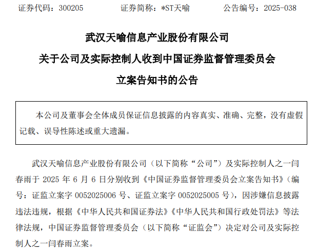 值得注意的是,公开信息以及此前报道显示,6月6日,*ST天喻公告,因涉嫌信息披露违法违规,根据相关法律法规,中国证监会决定对公司及实际控制人之一闫春雨立案。公司进入多事之秋,公司董事高管密集辞职。8月14日,*ST天喻召开董事会,聘任现年36岁的夏威夷为公司董秘,但公司独立董事孙晨钟对该议案投了反对票,其反对理由为“特殊时期,不宜选没有上市公司工作经验人员任高管。”