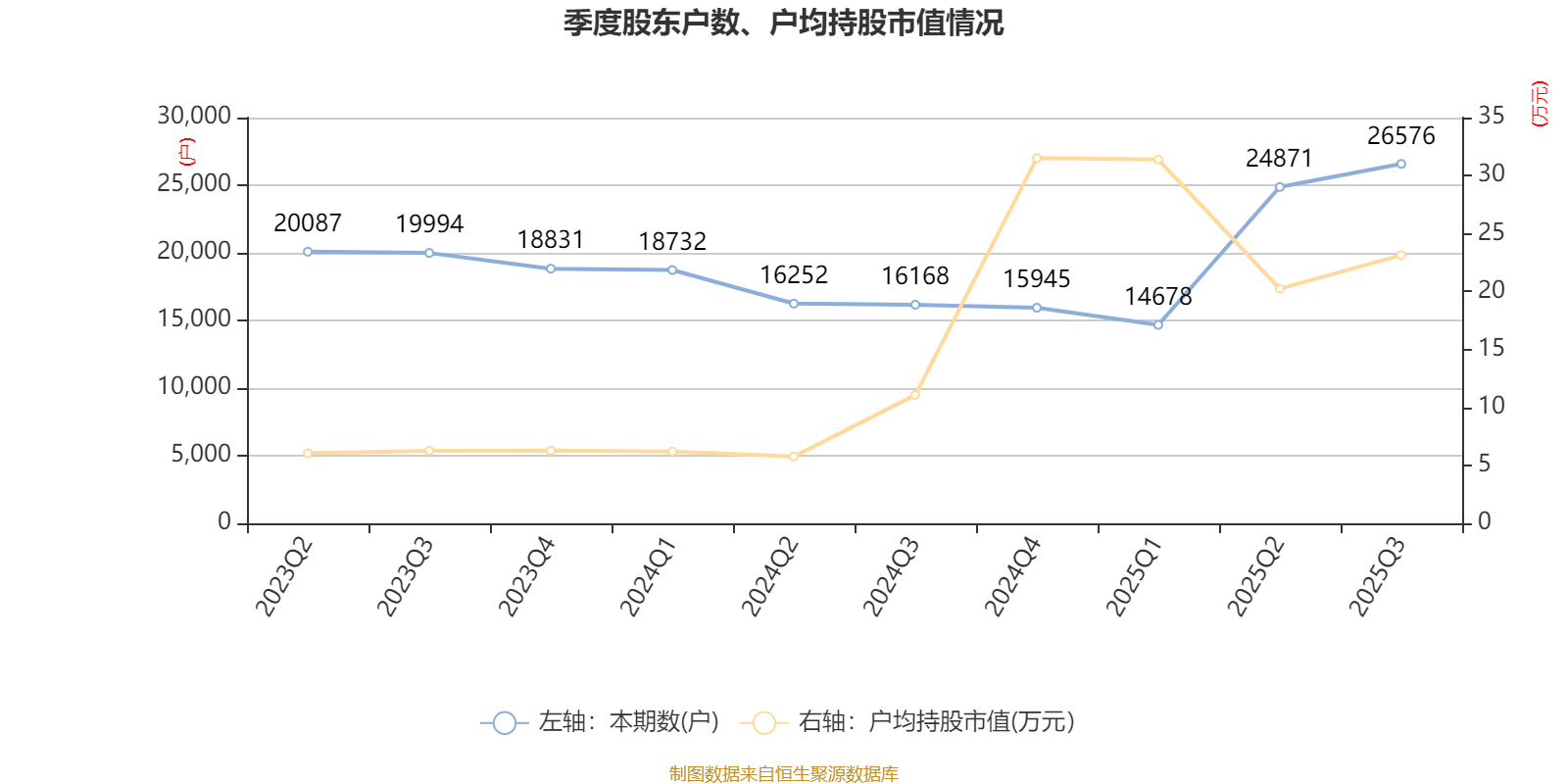 三季报显示,2025年三季度末的公司十大流通股东中,新进股东为田婉凤、王麟,取代了二季度末的肖四清、2022年员工持股计划。在具体持股比例上,郭子豪、徐开东持股有所上升,华新、朱凯持股有所下降。