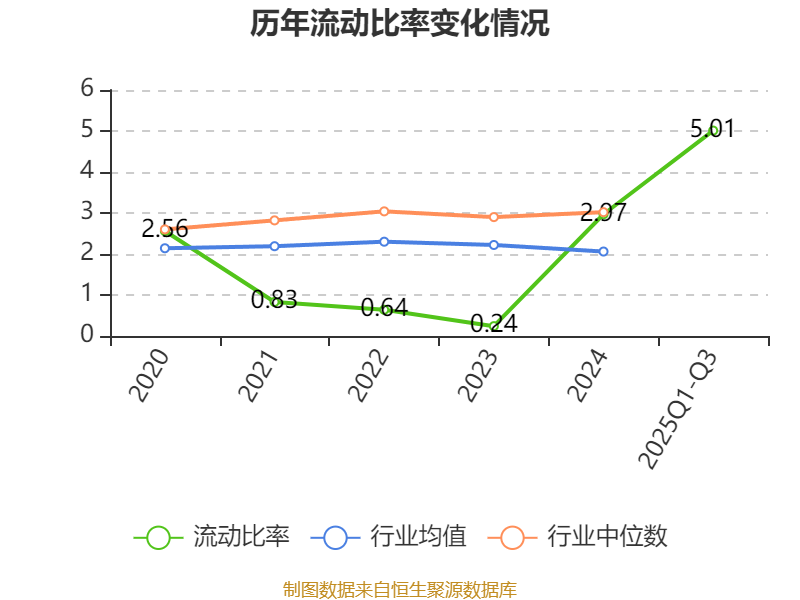 2025年前三季度,公司流动比率为5.01,速动比率为5。