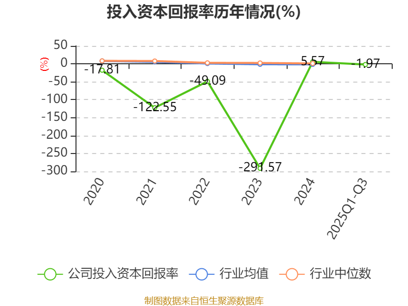 盈利能力方面, 2025年前三季度公司加权平均净资产收益率为-1.51%。公司2025年前三季度投入资本回报率为-1.97%。