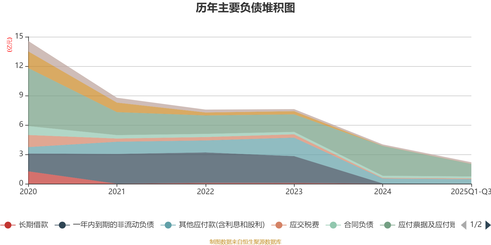 负债重大变化方面,截至2025年三季度末,公司应付票据及应付账款较上年末减少58.1%,占公司总资产比重下降12.7个百分点;预收款项占公司总资产的0.55%,上年末为0;应付职工薪酬较上年末减少48.57%,占公司总资产比重下降0.28个百分点;应交税费较上年末增加24.82%,占公司总资产比重上升0.17个百分点。