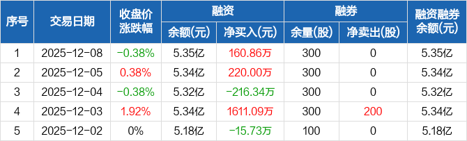 东方电热:融资净买入160.86万元,融资余额5.35亿元(12-08)