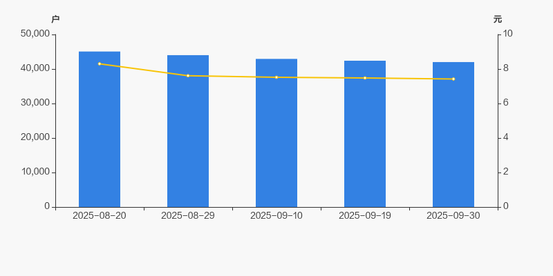 2025年8月20日至今,公司股东户数有所下降,区间跌幅为6.79%。2025年8月20日至2025年9月30日区间股价下降10.60%。