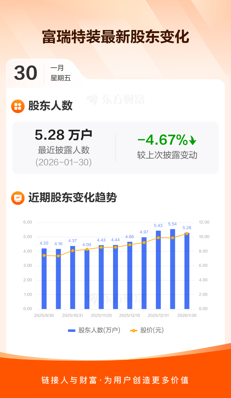 富瑞特装:截至1月30日最新股东户数5.28万户,较上期减少4.67%
