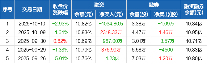 上海新阳:融资净偿还1034.8万元,融资余额10.82亿元(10-10)