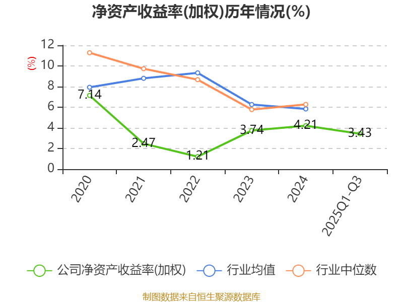 盈利能力方面, 2025年前三季度公司加权平均净资产收益率为3.43%,同比上升0.36个百分点。公司2025年前三季度投入资本回报率为3.84%,较上年同期上升1.17个百分点。