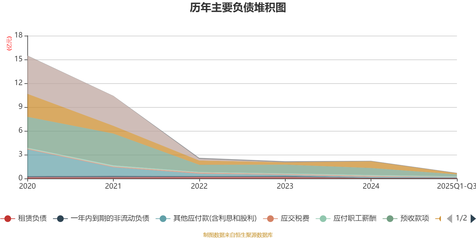 负债重大变化方面,截至2025年三季度末,公司应付票据及应付账款较上年末减少83.78%,占公司总资产比重下降14.05个百分点;预收款项较上年末减少72.74%,占公司总资产比重下降10.86个百分点;应交税费较上年末减少85.28%,占公司总资产比重下降1.93个百分点;租赁负债较上年末增加31.43%,占公司总资产比重上升1.01个百分点。