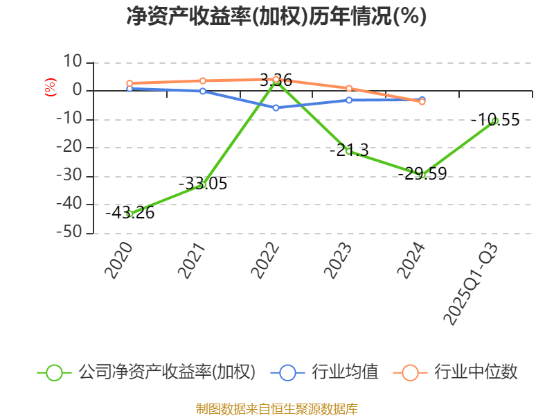 盈利能力方面, 2025年前三季度公司加权平均净资产收益率为-10.55%,同比上升0.18个百分点。公司2025年前三季度投入资本回报率为-14.48%,较上年同期上升1.68个百分点。