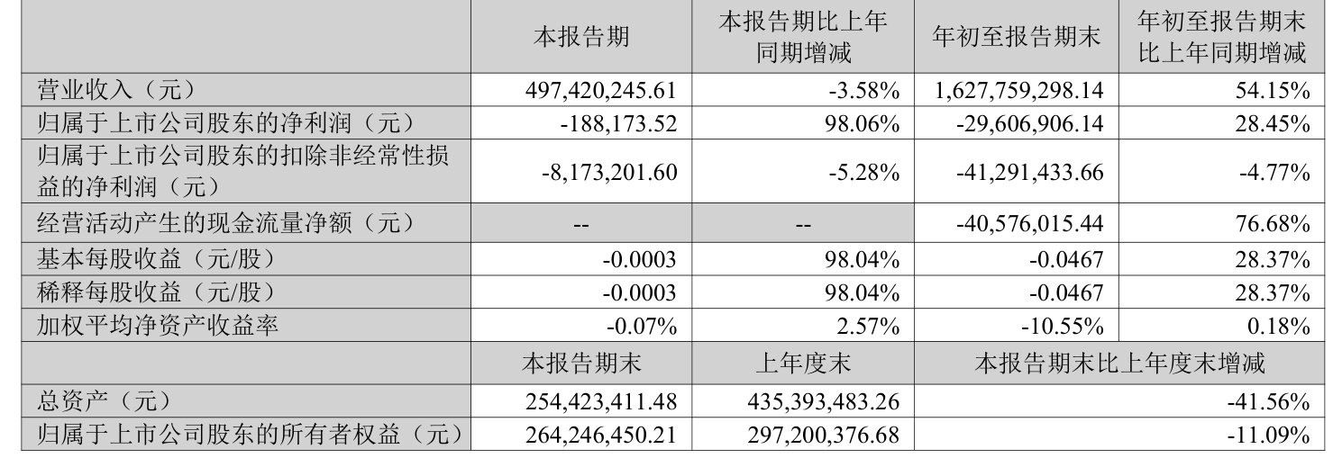 中证智能财讯佳云科技(300242)10月30日披露2025年第三季度报告。前三季度公司实现营业总收入16.28亿元,同比增长54.15%;归母净利润亏损2960.69万元,上年同期亏损4137.86万元;扣非净利润亏损4129.14万元,上年同期亏损3941.27万元;经营活动产生的现金流量净额为-4057.6万元,上年同期为-1.74亿元;报告期内,佳云科技基本每股收益为-0.0467元,加权平均净资产收益率为-10.55%。