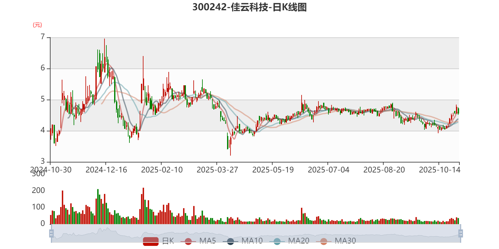 以10月29日收盘价计算,佳云科技目前市盈率(TTM)约为-30.71倍,市净率(LF)约10.95倍,市销率(TTM)约1.35倍。