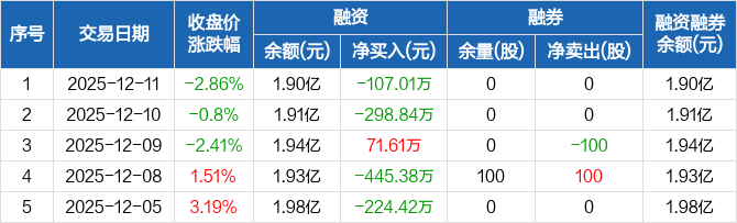 天玑科技:融资净偿还107.01万元,融资余额1.9亿元(12-11)