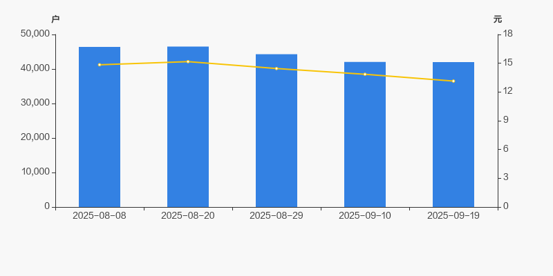 自2025年8月20日以来,公司股东户数连续3期下降,截至目前减幅为9.69%。2025年8月20日至2025年9月19日区间股价下降13.38%。