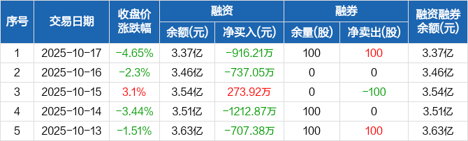 依米康:融资净偿还916.21万元,融资余额3.37亿元(10-17)