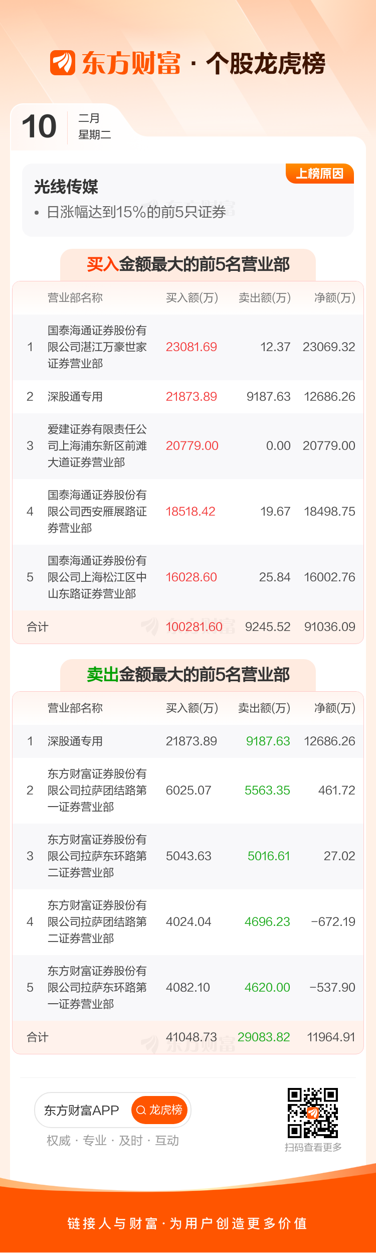 光线传媒(300251)龙虎榜数据(02-10)