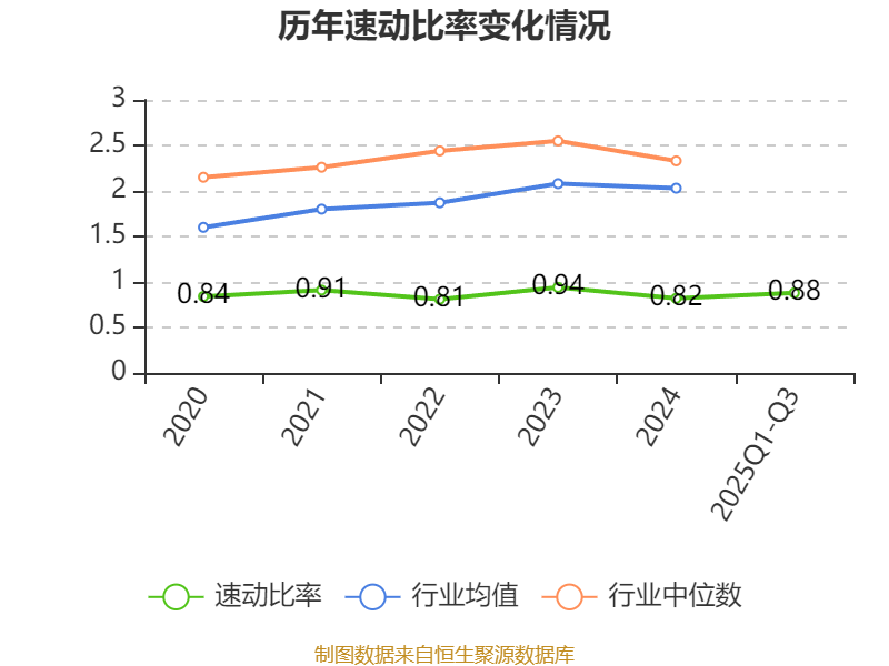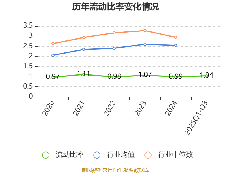 2025年前三季度,公司流动比率为1.04,速动比率为0.88。