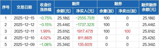 常山药业:融资净偿还2555.79万元,融资余额25.18亿元(12-15)