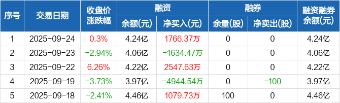 精锻科技:融资净买入1766.37万元,融资余额4.24亿元(09-24)