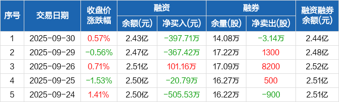 雅本化学:融资净偿还397.71万元,融资余额2.43亿元(09-30)
