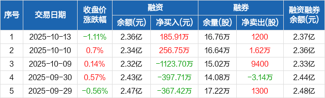 雅本化学:融资净买入185.91万元,融资余额2.36亿元(10-13)