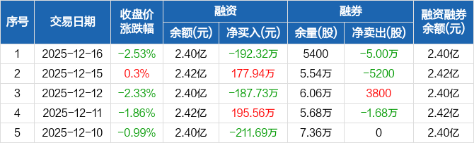 雅本化学:融资净偿还192.32万元,融资余额2.4亿元(12-16)