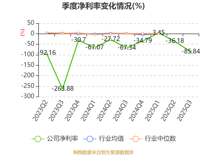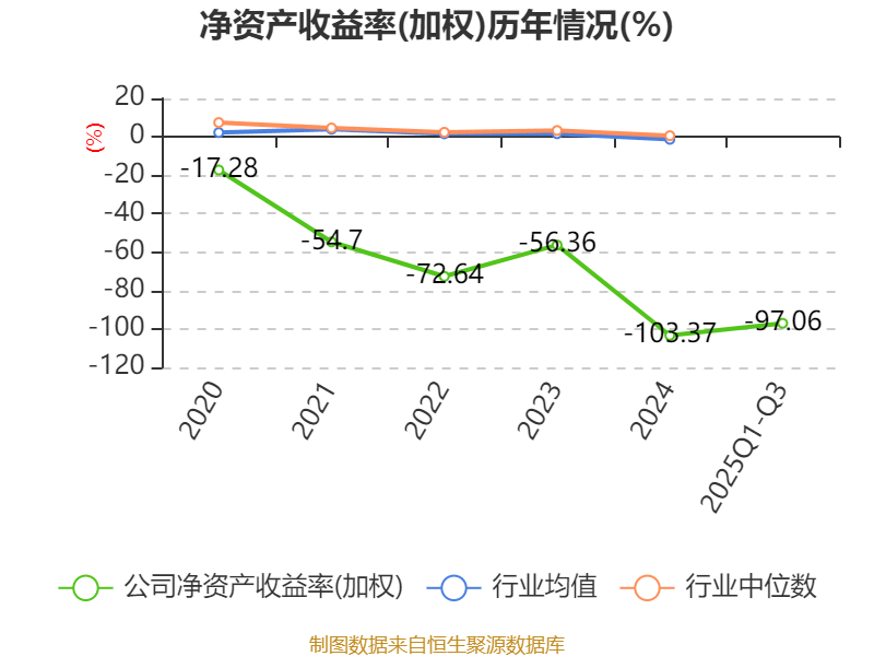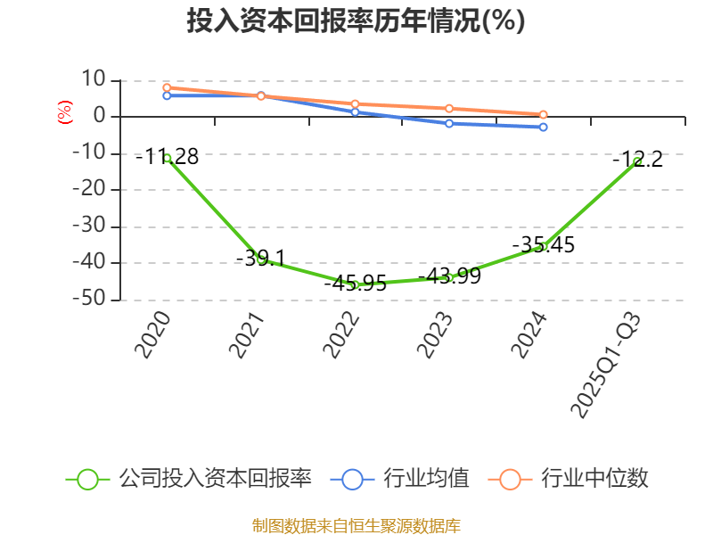 盈利能力方面, 2025年前三季度公司加权平均净资产收益率为-97.06%,同比下降48.65个百分点。公司2025年前三季度投入资本回报率为-12.2%,较上年同期上升6.28个百分点。