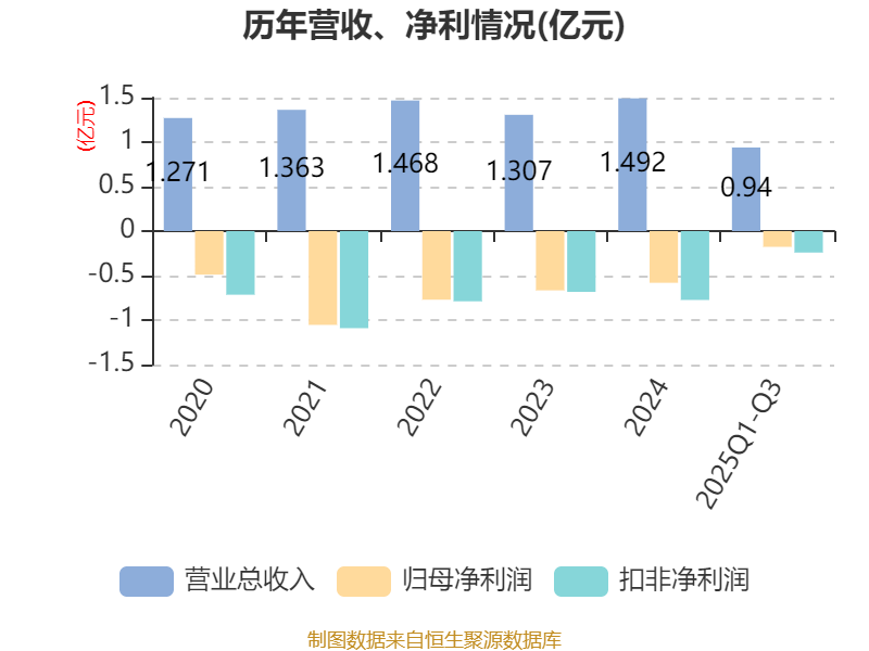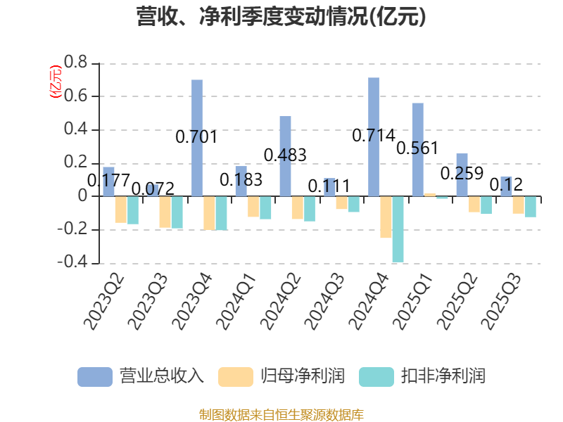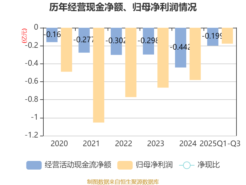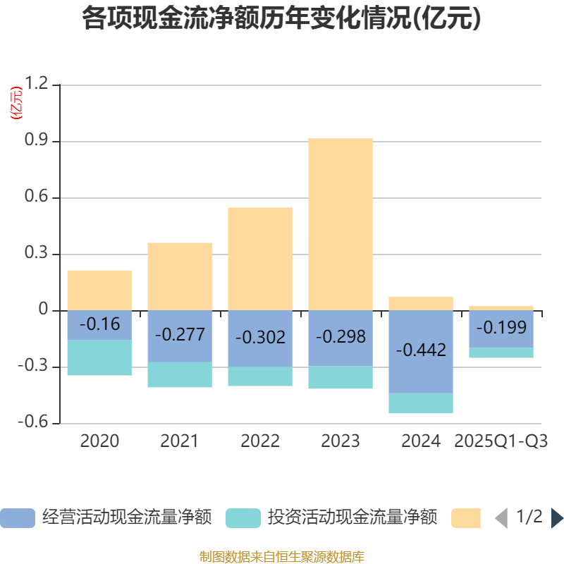 2025年前三季度,公司经营活动现金流净额为-1987.45万元,同比增加2261.52万元;筹资活动现金流净额217.82万元,同比减少681.67万元;投资活动现金流净额-539.72万元,上年同期为-841.71万元。