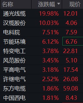 板块异动|特高压概念板块活跃 通光线缆涨停