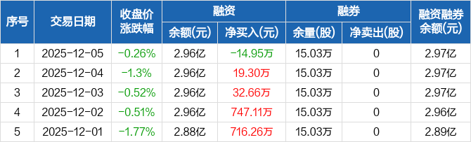 尔康制药:融资净偿还14.95万元,融资余额2.96亿元(12-05)
