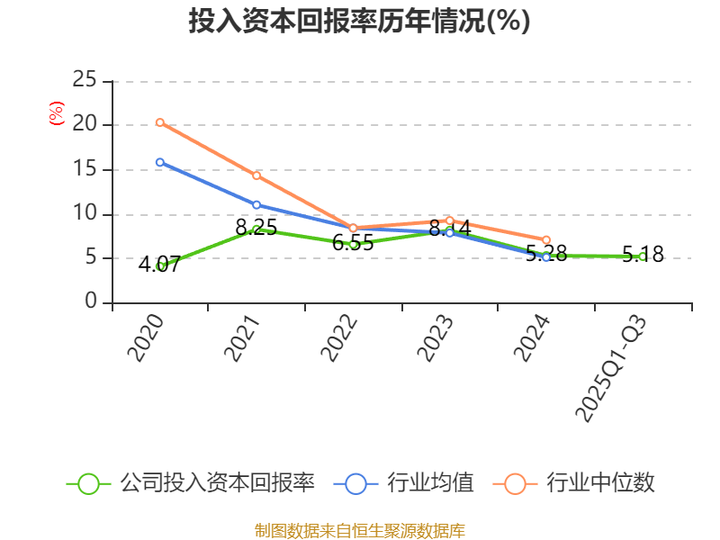盈利能力方面, 2025年前三季度公司加权平均净资产收益率为7.5%,同比上升0.88个百分点。公司2025年前三季度投入资本回报率为5.18%,较上年同期上升0.23个百分点。