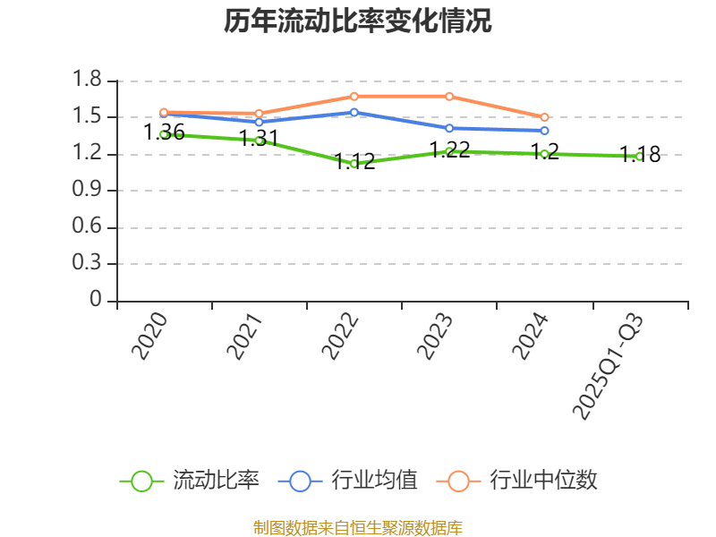 2025年前三季度,公司流动比率为1.18,速动比率为0.95。