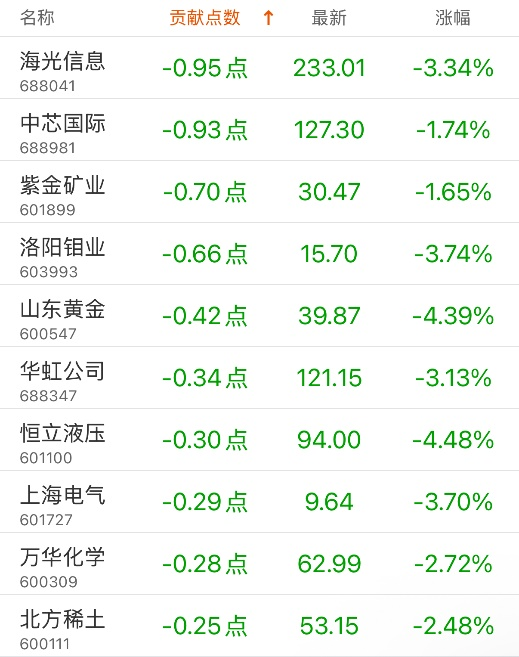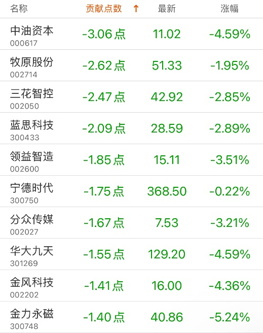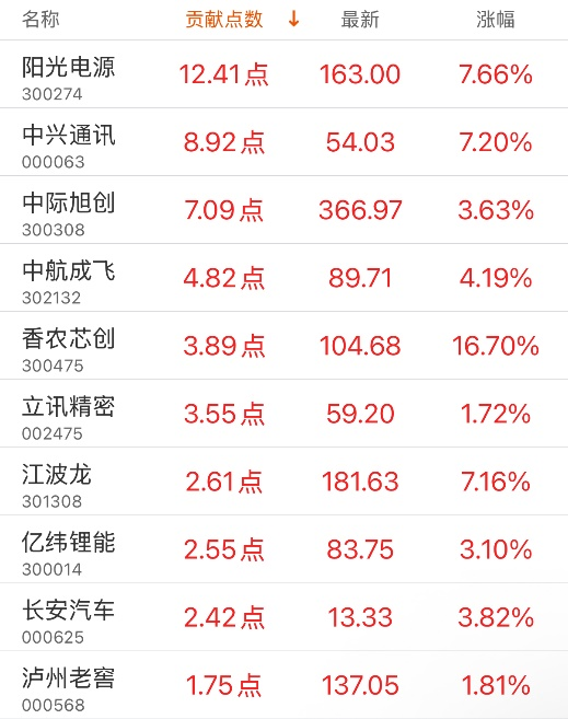 指数贡献榜:阳光电源贡献12.41点