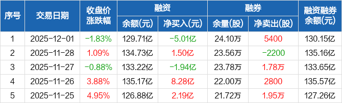 阳光电源:融资净偿还5.01亿元,两市排名第二(12-01)